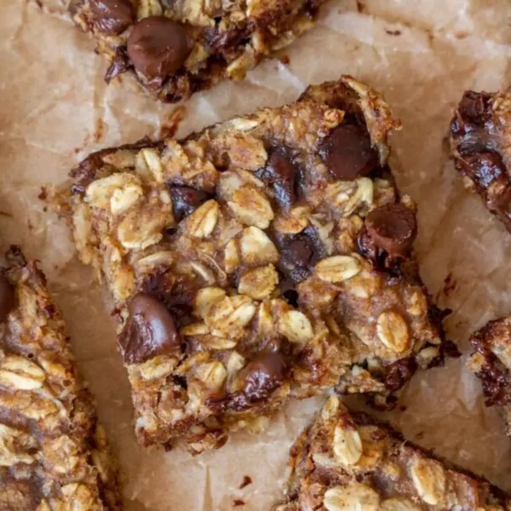 - Mix together the mashed bananas, nut butter, rolled oats, cinnamon, vanilla, maple syrup, chocolate chips, and salt in a large mixing bowl.