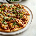 This BBQ Chicken Flatbread is a quick and delicious weeknight recipe that combines the smoky sweetness of barbecue sauce with juicy chicken, melted cheese, and crispy flatbread. Ready in under 30 minutes, its perfect as a main dish, a fun appetizer, or even a party snack.Whether you’re feeding a family or whipping up a cozy dinner for two, this recipe delivers bold flavors with minimal effort.