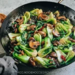An easy bok choy mushroom stir fry that can be whipped together quickly for a speedy weekday dinner. The tender mushrooms and crisp bok choy are brought together with a gingery garlicky brown sauce, which tastes comforting and satisfying. Serve it as a side or a main course over steamed rice. {Vegan, Gluten-Free Adaptable}