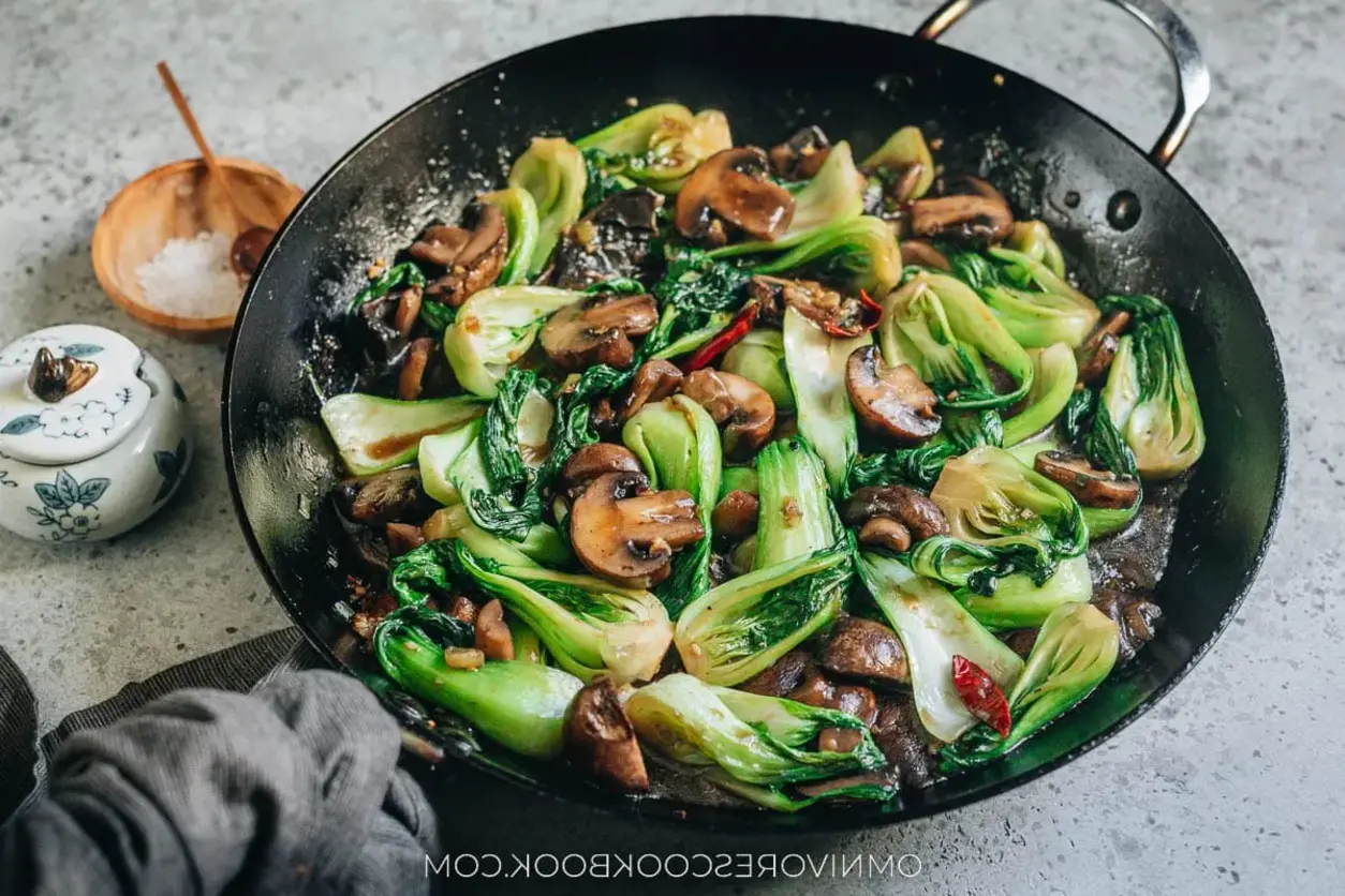An easy bok choy mushroom stir fry that can be whipped together quickly for a speedy weekday dinner. The tender mushrooms and crisp bok choy are brought together with a gingery garlicky brown sauce, which tastes comforting and satisfying. Serve it as a side or a main course over steamed rice. {Vegan, Gluten-Free Adaptable}To make this dish gluten free, use tamari to replace soy sauce. Use gluten-free oyster sauce to replace the vegetarian oyster sauce.