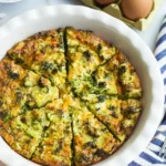 Veggie filled Broccoli and Cheddar Crustless Quiche – without the crust this dish comes together quickly and easily in one bowl with only 7 total ingredients! | Gluten Free + Low Carb + Keto + Vegetarian