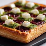 Serve this tart warm as an appetizer with a side of balsamic reduction or fresh arugula for a refreshing contrast. It’s also great as a light lunch paired with soups or salads. For parties, cut into bite-sized pieces and arrange on a platter with cured meats for an Italian-inspired spread, making your checkerboard puff pastry tart the highlight of any meal.