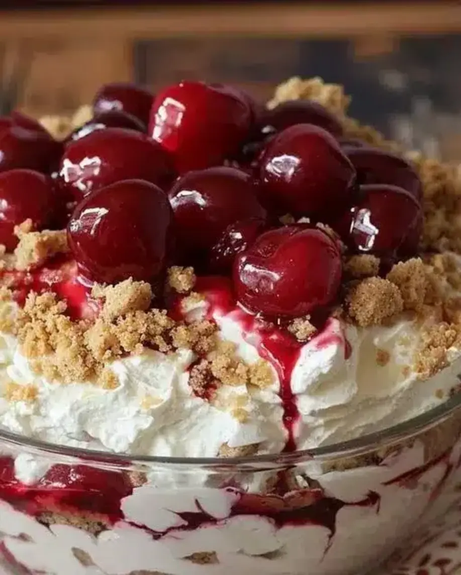 Cherry Cheesecake Fluff is a no-bake, creamy dessert made with whipped topping, cherry pie filling, and a graham cracker crumble. It’s quick to prepare and perfect for gatherings, holidays, or weeknight indulgence.