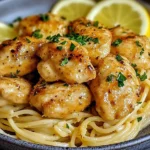This dish combines tender, golden chicken bites with a creamy, zesty Parmesan pasta. The garlic butter and lemon infuse the chicken with vibrant flavor, while the rich pasta balances it out for a perfect weeknight dinner.