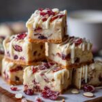Delicious shortbread bars loaded with tart cranberries, creamy white chocolate, and crunchy almonds. Perfect for holidays or any dessert occasion.