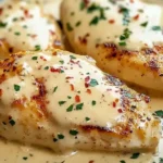 Elevate your Cream Cheese Chicken Recipe – Easy, Creamy Dinner Idea with thoughtful plating that makes it visually appealing and restaurant-worthy. Arrange the chicken breasts on a warm plate and drizzle the extra creamy sauce artfully around them, creating a glossy pool that highlights the golden-brown exterior. For an impressive garnish, sprinkle fresh parsley and perhaps a few cracks of black pepper for contrast. Pair this dish with complementary sides like steamed broccoli or garlic mashed potatoes to balance the richness, or serve over rice to soak up the sauce. For a complete meal, add a crisp green salad to cut through the creaminess, making it perfect for family dinners or date nights.