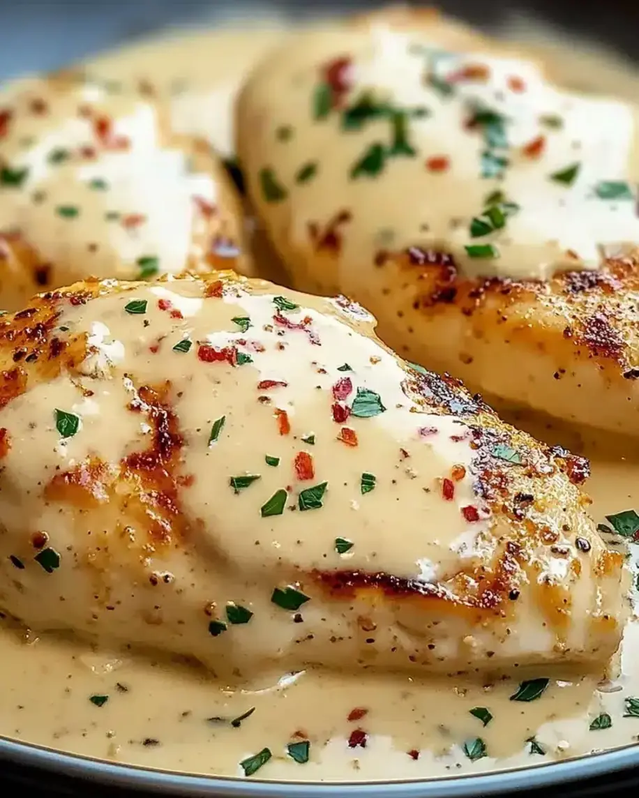 Make-Ahead Strategy: Prepare the chicken and sauce components up to 3 days in advance for maximum convenience. Season and sear the chicken breasts ahead, then store them in an airtight container in the refrigerator. Chop the onions, garlic, and parsley separately and keep them ready in the fridge. When ready to cook, simply combine everything in the skillet for a quick assembly, ensuring the extra creamy one-pan method retains its appeal.