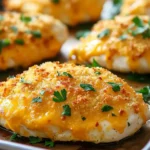 - 2️⃣Prepare the Coating:In a shallow bowl, combine the shredded cheddar cheese, panko breadcrumbs, garlic powder, paprika, salt, and black pepper. Mix well.3️⃣Dip and Coat the Chicken:Pour the milk into another shallow bowl. Dip each chicken breast into the milk to moisten, then dredge it in the breadcrumb and cheese mixture. Press the coating firmly onto the chicken to ensure it sticks well.4️⃣Arrange for Baking:Place the coated chicken breasts onto the prepared baking sheet, spacing them evenly to allow for even cooking.5️⃣Bake to Perfection:Bake the chicken for 35-40 minutes, or until the internal temperature of the chicken reaches 165°F (74°C) and the coating is golden and crispy.6️⃣Garnish and Serve:Remove the chicken from the oven and sprinkle with chopped parsley. Serve hot with your favorite sides, such as roasted vegetables, mashed potatoes, or a crisp salad.