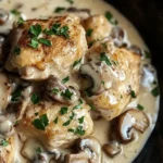 - 6️⃣Prepare the cream sauce:Stir in the heavy cream and bring the mixture to a gentle simmer. Allow the sauce to cook for 3-4 minutes, or until slightly thickened.7️⃣Combine chicken and sauce:Return the chicken breasts to the skillet. Spoon the creamy mushroom sauce over the chicken and simmer for another 5 minutes to meld the flavors.8️⃣Garnish and serve:Sprinkle with fresh parsley for a pop of color and serve immediately while warm.