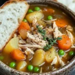 - 3️⃣Add Chicken and Peas:Add the shredded chicken and frozen peas to the pot. Stir to combine and let simmer for another 5–10 minutes, ensuring everything is heated through and flavors meld together.4️⃣Serve:Ladle the stew into bowls and garnish with fresh thyme or parsley. Serve hot, accompanied by crusty bread or warm rolls for a complete meal.