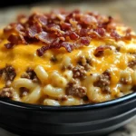 - Add the chopped onion and cook for3–4 minutesor until softened. Drain any excess fat from the skillet.4️⃣Add the seasoningsStir in the cooked, crumbled turkey bacon, ketchup, mustard, garlic powder, onion powder, salt, and pepper. Let the mixture simmer for5 minutesto blend the flavors.5️⃣Combine with pastaIn a large mixing bowl, combine the cooked macaroni with the beef mixture. Pour in the milk and stir well to coat everything evenly.6️⃣Assemble the casseroleTransfer the mixture into the prepared baking dish, spreading it out evenly. Sprinkle the shredded cheddar and mozzarella cheeses evenly over the top.7️⃣BakeBake in the preheated oven for20–25 minutes, or until the cheese is melted and bubbling.8️⃣Cool and serveLet the casserole cool for a few minutes before serving. Enjoy the cheesy, hearty goodness!