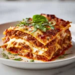 A classic comfort food, this easy homemade lasagna features layers of ricotta, mozzarella, marinara, and ground beef or sausage, perfect for family gatherings.