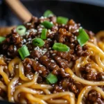- Heat a skillet over medium-high heat. Add the ground beef and cook until browned, about 5 minutes. Add the ginger and garlic during the last 2 minutes of cooking.2️⃣Prepare the noodles:While the beef cooks, boil the noodles according to the package instructions until al dente. Drain and set aside.3️⃣Make the sauce:Drain any excess fat from the beef. Stir in the brown sugar, beef broth, soy sauce, hoisin sauce, black pepper, and red pepper flakes (if using). Mix well to combine.4️⃣Thicken the sauce:In a small bowl, whisk together the cornstarch and water to create a slurry. Pour the slurry into the beef mixture, stirring constantly. Bring the mixture to a simmer and cook until thickened, about 2-3 minutes.5️⃣Combine noodles and beef:Add the cooked noodles to the skillet and toss them in the sauce to coat evenly. Let the noodles sit for 2-3 minutes to absorb the flavors.6️⃣Garnish and serve:Serve hot, garnished with sliced green onions. Enjoy this hearty, satisfying meal!