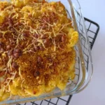- After that, transfer the macaroni and cheese mixture to the baking dish, layer it with the toasted breadcrumbs, and bake in the oven at 400°F for 10 minutes.