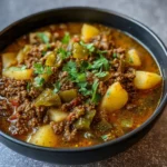 Once done, remove from heat and let it rest for 2 minutes. Serve hot, garnished if desired with fresh cilantro. This final touch brings brightness. Your Green Chile Picadillo Beef is now ready – hearty, savory, and restaurant-worthy.