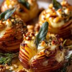 A delightful twist on the classic Hasselback potato, featuring thinly sliced apples stuffed with creamy Brie cheese and baked to perfection on a charcuterie-style tray. Perfect for fall gatherings or as an elegant appetizer.