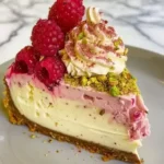 - Topping:Before serving, decorate with raspberries, whipped cream, pistachios, raspberry coulis, and lemon zest.