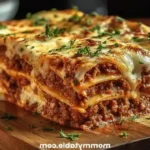 A rich and creamy lasagna layered with noodles, cheeses, and savory meat or vegetables, perfect for family dinners or meal prep.
