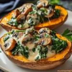 Absolutely, you can make this recipe vegan by swapping the heavy cream for a plant-based alternative like coconut cream or cashew cream, and using olive oil instead of butter. Replace any dairy components to keep the extra creamy filling intact while boosting the nutritional value of mushroom and spinach stuffed sweet potatoes, making it a go-to for vegan diets without sacrificing taste.