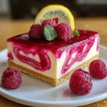 For serving this raspberry lemon swirl cheesecake, pair it with a mint garnish for added freshness or a drizzle of honey to amplify the sweetness. It’s perfect for summer gatherings, dessert parties, or as a light end to a meal; serve chilled with coffee or tea to complement the tangy notes, elevating the overall experience of this lemon swirl dessert.