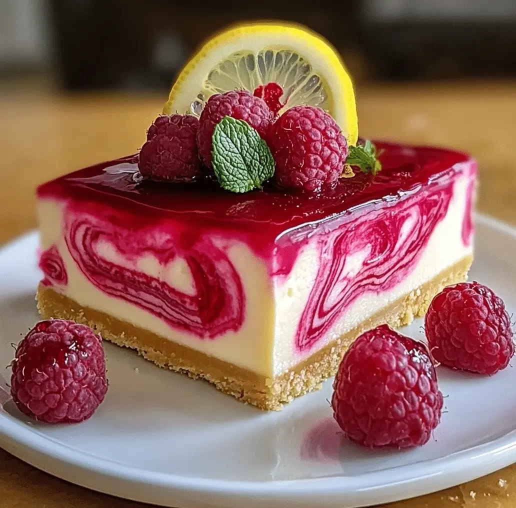 The allure of this no bake raspberry lemon swirl cheesecake lies in its heavenly textures and flavors that dance on your palate. Picture a velvety, ultra-creamy filling that yields effortlessly to your fork, contrasted by a crisp, buttery graham cracker crust that provides the perfect foundation. The raspberries infuse a bright, fruity sweetness, while the lemon adds a sharp, invigorating zing that awakens your senses. Each swirl creates a mesmerizing marbled effect, releasing aromas of fresh citrus and berries that fill the air as you prepare it, building anticipation for that first blissful taste.