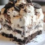 Mix the crushed Oreos (reserving ½ cup for topping) with the melted unsalted butter in a large bowl until the mixture resembles wet sand and holds together when pressed. Firmly press this mixture into the bottom of a greased 9×13-inch pan to create an even base, using the back of a spoon or your hands for a compact layer.