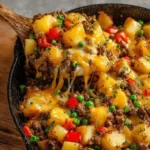 The Chef’s Secret: The true magic of this Potato Skillet – Easy One-Pan Cheesy Dinner Recipe lies in its innovative one-pan method, which allows all ingredients to meld together seamlessly in a single skillet. This technique not only infuses the potatoes with the rich flavors of beef and spices but also prevents overcooking by maintaining even heat distribution. By cooking everything together, you lock in moisture and enhance the smoky paprika’s depth, creating a dish that’s far superior to multi-pan alternatives that often lead to flavor loss.