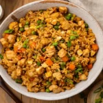 This is the best chicken fried rice recipe because it’s loaded with tender, savory chicken, fluffy rice, scrambled eggs, and crisp vegetables, all tossed together with butter, soy sauce, and sesame oil for that authentic hibachi flavor you crave!