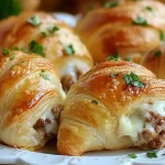 These buttery crescent rolls are stuffed with a creamy, spicy mixture of beef sausage, cream cheese, and Rotel tomatoes with green chilies. Perfect for parties, snacks, or appetizers, they’re irresistibly delicious and easy to make!