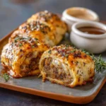 Take your snack game up a notch with these Savory French Onion Sausage Rolls! Juicy sausage is wrapped in flaky pastry and combined with caramelized onions for a rich, flavorful bite. Perfect as an appetizer, party snack, or cozy comfort food. Easy to make, crowd-pleasing, and absolutely delicious!