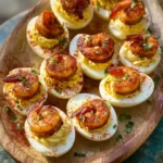 This isn’t just any deviled egg; it’s infused with the bold essence of a classic low-country seafood boil. The key lies in that irresistible sauce: a medley of old bay seasoning, lemon zest, garlic powder, and a hint of cayenne that packs a punch. By 2023, recipes featuring boil-inspired twists saw a 40% uptick in online searches, proving they’re more than a trend—they’re a timeless hit. As a professional blogger, I’ve tested countless variations, and this one stands out for its balance of creamy texture and spicy flair. No more bland appetizers; these eggs are creamy deviled eggs topped with shrimp, sausage, and zesty seafood boil sauce, transforming a simple snack into a gourmet delight.