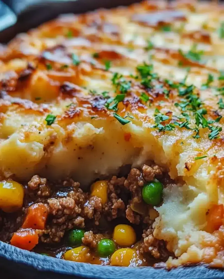 Picture the rich, savory aroma of ground beef or lamb simmering with fresh vegetables, creating a mouthwatering gravy that fills your kitchen with warmth. Each bite offers a perfect balance of textures: the tender, juicy meat filling contrasts beautifully with the velvety, extra creamy mashed potatoes on top, which melt in your mouth like a comforting blanket. The flavors are a symphony of earthy thyme and rosemary, tangy Worcestershire sauce, and sweet undertones from the vegetables, making every forkful irresistibly delicious and deeply satisfying.