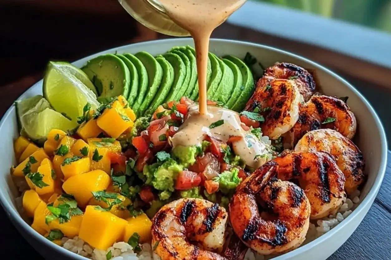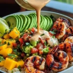 This Shrimp and Avocado Bowls with Mango Salsa & Lime-Chili Sauce recipe is a refreshing, healthy, and easy meal idea featuring grilled shrimp, creamy avocado, and zesty mango salsa topped with lime-chili dressing. Perfect for summer lunches, meal prep, or light dinners. Gluten-free, low-carb, and bursting with tropical flavor.