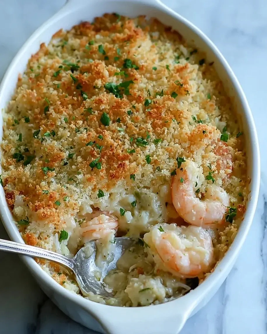 In a small bowl, combine the panko breadcrumbs, grated Parmesan, melted butter, and the remaining tablespoon of parsley. Mix until the breadcrumbs are evenly coated. Sprinkle this mixture evenly over the entire surface of the casserole. Bake, uncovered, for 40-45 minutes, or until the casserole is bubbling vigorously around the edges, the shrimp are pink and cooked through, and the breadcrumb topping is a deep, irresistible golden brown. Let it rest for 10 minutes before serving—this allows the sauce to set slightly for perfect scooping.