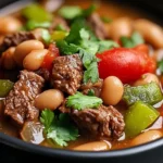 - 2️⃣Combine Ingredients in the Slow Cooker:Transfer the cooked beef and onion mixture to the slow cooker. Add the pinto beans, diced tomatoes with green chilies, diced green chilies, beef broth, chili powder, cumin, smoked paprika, garlic powder, and black pepper.3️⃣Season and Stir:Stir the ingredients together thoroughly. Taste and adjust the salt as needed.4️⃣Cook the Dish:Cover the slow cooker and cook onlow for 6–8 hoursorhigh for 3–4 hours, stirring occasionally if possible.5️⃣Finish and Serve:Just before serving, stir in fresh cilantro if desired.Serve hot with cornbread, rice, or tortilla chips. Add toppings like shredded cheese, sour cream, or avocado for extra richness.