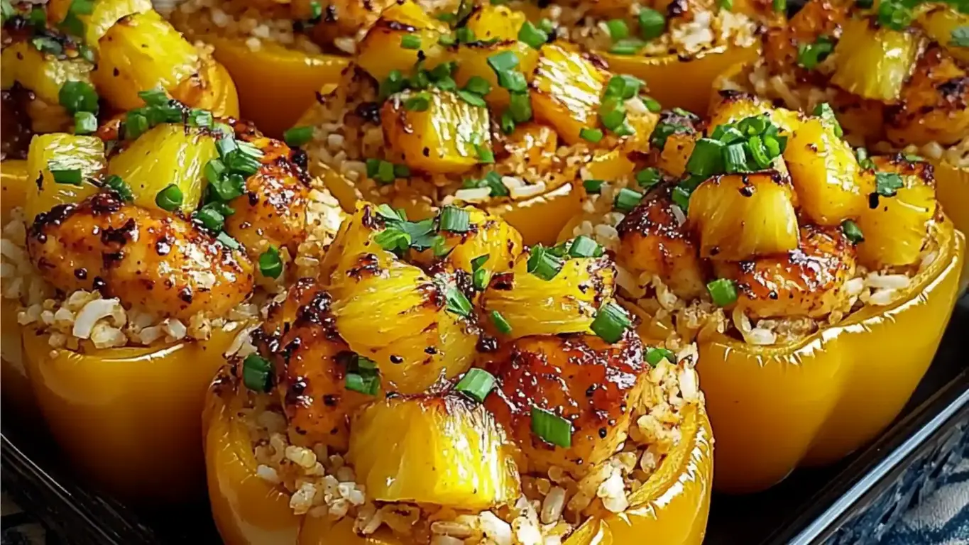 Teriyaki Pineapple Chicken and Rice Stuffed Peppers – A Sweet, Savory, and Colorful Meal!